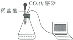 13. 为测定某氢氧化钠固体是否变质,小科同学取适量样品配制成溶液,加入锥形瓶中,再逐滴加入稀盐酸至过量,并利用传感器测定CO₂的含量,如图所示。下列结论中错误的是(