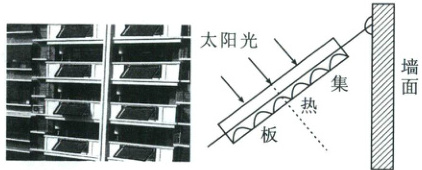 21. 壁挂式太阳能热水器是一种专为高层住宅配套设计的热水器(如图所示),可灵活安装在阳台或墙壁上。集热板与墙面夹角大小可随正午太阳高度的变化而变化,始终与正午太阳光垂直,以达到最佳集热效果。