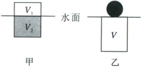 (2)建立模型是解决系统问题的常用方法。如图所示,某物体漂浮于水面,其总体积为V,露出水面的部分体积为V₁,浸入水面中部分体积为V₂(图甲);当该物体承载最大重力时,恰好完全浸没于水中(图乙)。则它承载的物体最大重力G=