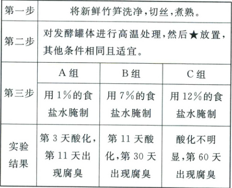 对酸笋发酵快慢的影响。(2)实验第三步要对发酵罐体进行高温处理的目的是
