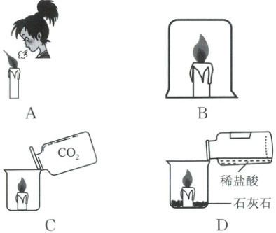 10. 下图中的四支蜡烛都将熄灭,其中与另外三支熄灭的原因