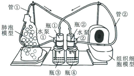 (用V₁、V₂表示)。(3)甲同学建议将瓶②、瓶④换成容积更大、瓶壁更厚的瓶;乙同学建议在瓶①和瓶③之间安装单向阀,确保“血流”从瓶①流向瓶③。请选择一位同学的建议,评价其是否合理并说明理由: