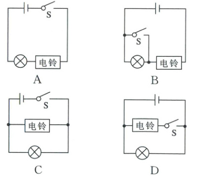 13. 某兴趣小组要为居家老人设计一个“应急呼叫器”的电路,要求:开关断开时,电灯和电铃均不工作;开关闭合时,灯亮铃响,即使电灯因断路不亮,电铃仍可工作。以下设计符合要求的是(