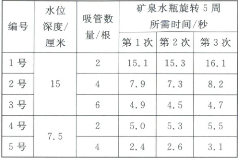 (4)请根据实验数据推测,________(填“水位深度”或“吸管数量”)对矿泉水瓶旋转快慢的影响更大。