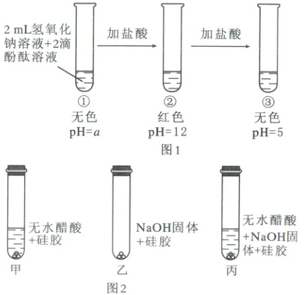 如图$2$是利用无水醋酸与氢氧化钠固体进行的三个实验,其中硅胶具有吸水性,吸水后由蓝色变为红色。若醋酸与氢氧化钠能及应,你预测的实验现象是