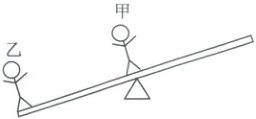 32. 把一长为$2\ m$的均质平板的中点支在水平面上一个不高的支点上,在平板上站有两个小孩(如图),已知:$m_甲 = 30\ kg$,位于板的中点,$m_乙 = 20\ kg$,位于板的左端,现两小孩以$0.1\ m/s$的速度沿板同时向右慢慢移动,经