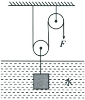 38. (5分)用如图所示的滑轮组匀速提起水中的重物,当重物浸没在水中时,拉力$F$为$11.6\ N$,滑轮组的机械效率为$75\%$,当重物离开水面时,拉力为$14.5\ N$(整个装置的摩擦和绳重不计),求重物的密度。