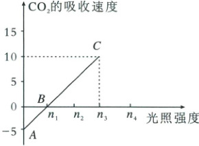 (1)在光照强度为$n_1$时,植物的光合作用与呼吸作用的速度正好相等