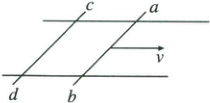 16. 如图所示在水平放置的金属导轨上放有两条平行的金属杆ab、cd,杆与导轨之间无摩擦,整个装置处在竖直方向(方向不变)的磁场中。当金属杆ab以速度v向右运动时,则金属杆cd将(