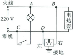 17. 某居民家中的部分电路如图所示,开始电路正常。将电饭煲的插头插入三孔插座后,正在烧水的电热壶突然不能工作,但是电灯仍然正常工作。拔出电饭煲的插头,电热水壶仍然不能工作。把测电笔分别插入插座的左右插孔,氖管均发光。若电路只有一处故障,则(