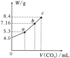 。(3)向100mL一定浓度NaOH溶液中通入CO₂充分反应后,在减压和较低温度下,小心地将溶液蒸干,得到白色固体M(不含结晶水)。通入二氧化碳的体积V(标准状况下)与M的质量W的关系如图所示。推断b点时M的组成成分及质量(写出计算过程)。