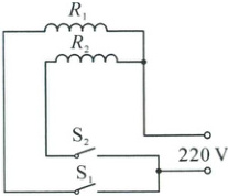 18.如图所示为多挡位加热器的电路图,电热丝R,的电阻小于电热丝R2的电阻。闭合S1和S2时,对电路的分析正确的是 (
