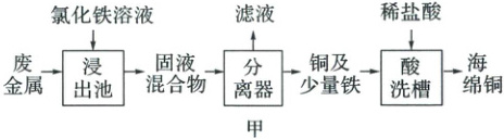 24.(4分)利用氯化铁溶液浸出废金属(主要成分为铁铜合金)回收海绵铜(一种特殊形态的单质铜)的某种工艺流程图如图甲所示: