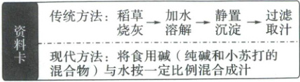 9. “灰汁团”是宁波传统小吃,制作过程中要用到大米和“灰汁”。“灰汁”制取方法如资料卡所示。下列说法