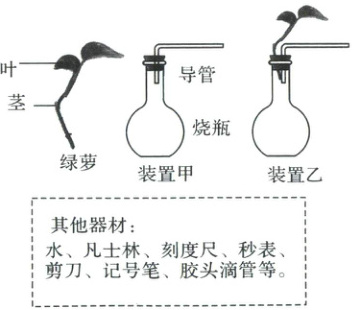 26. 有人认为:许多植物的茎和叶都能进行蒸腾作用,且叶是主要的蒸腾作用器官。为验证这一观点,老师提供如下器材供同学们实验,各种器材数量充足。