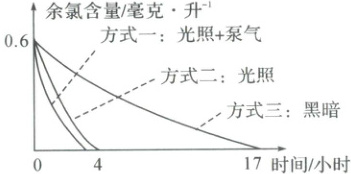 (1)自来水消毒后残留的氯称为余氯,其对鱼有害。某研究者用三种不同的方式去除余氯,其效果如图所示。据图,小明采取方式二去除余氯,其理由是
