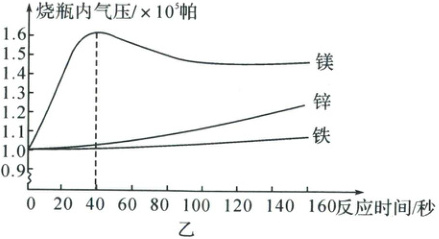 (3)解释镁与稀盐酸反应,0~80秒瓶内气压发生如图乙变化的原因: