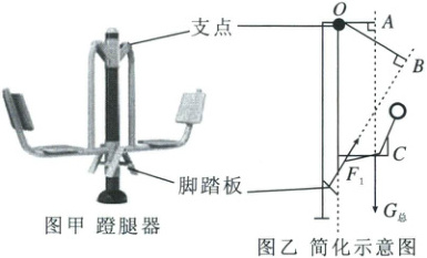 32. (8分) 图甲为蹬腿器,是一种常见的锻炼器材,可以提升下肢力量。
