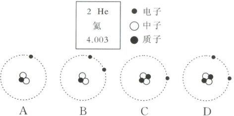 2. 氦元素在元素周期表中的信息如图所示。下列能表示氦原子的微粒模型是(