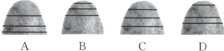4. 兴趣小组用土豆模拟山峰,绘制等高线地形图。在土豆上绘制的等高线正确的是(
