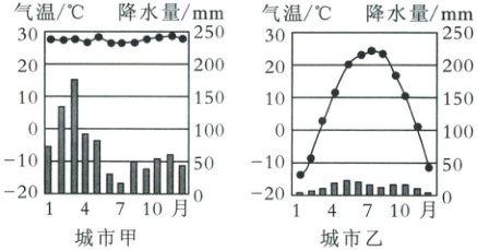 (1)车厘子是一种喜温而不耐寒的落叶果树,适宜生长在环境温度为$15\sim25^{\circ}C$、降水量为$600\sim1000$毫米的地区。据此推测,下图中最适合车厘子生长的地方是