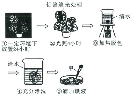 (4)小明按如图步骤进行实验,滴加碘液后观察到叶片未遮光部分呈现棕黑色,与预期的蓝色不符,老师指出其实验操作③中存在问题,请提出改进措施: