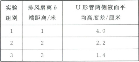 (4)排风扇放置在同一位置,改变排风扇风力大小,观察并记录U形管两侧液面平均高度差大小