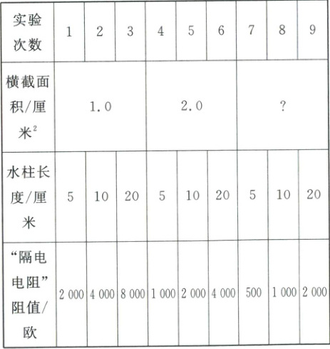 (2)分析表中数据,推测第7至9次实验选择的玻璃管的横截面积为