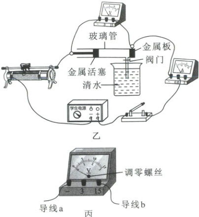 ①断开开关,按图乙方式连接电路,观察电压表示数如图丙所示。