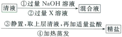 (1)加入$NaOH$溶液目的是除去清液中的$MgCl_{2}$杂质,则加入$NaOH$溶液时发生反应的化学反应方程式为________________。