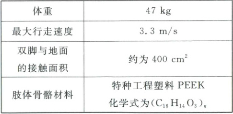 29. (8分)如图为今年春晚表演的机器人,部分信息如下表。
