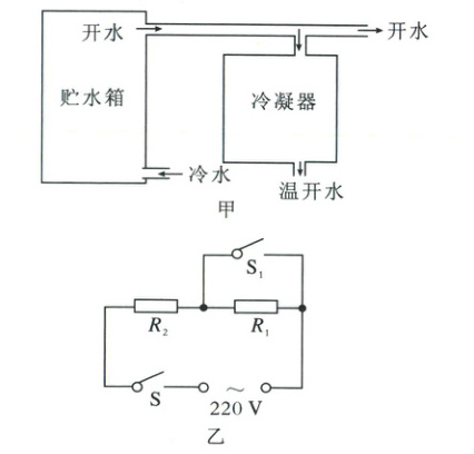 (2)图乙为电加热装置电路简化图,饮水机有加热挡和保温挡。当开关S₁