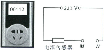 (1)用电器接入MN之间,则电流传感器与用电器串联,由于电流传感器测得电流$I = 5A$,则电路中电流为5A,则该电路的实际功率$P = UI = 220V×5A = 1100W$。