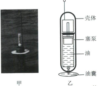 11. 宁波夏秋季节常受台风侵袭,图甲所示为用于台风预测的Argo浮标,它在海水中始终漂浮。浮标结构如图乙所示,由坚硬壳体和可伸缩油囊组成。当壳体内的油被泵入油囊时,油囊膨胀,浮标上浮;当油被抽回壳体时,油囊收缩,浮标下沉。Argo浮标能够实现上浮和下沉的主要原因是其改变了自身的(