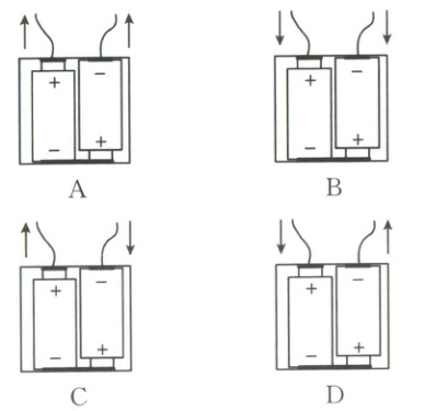 12. 电源可以使电荷定向移动形成持续电流。下图为电动玩具中电池的安装情况,当电动玩具工作时,电流方向标注正确的是(