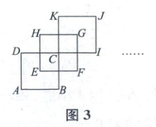 14. (创新·新情境[多选题])边长为 2 个单位长度的正方形 $ ABCD $ 如图 1 所示. 将正方形 $ ABCD $ 向右平移 1 个单位长度,再向上平移 1 个单位长度,得到正方形 $ EFGH $,正方形 $ ABCD $ 和 $ EFGH $ 的组合图形如图 2 所示. 将正方形 $ EFGH $ 向右平移 1 个单位长度,再向上平移 1 个单位长度,得到正方形 $ CIJK $,正方形 $ ABCD $,$ EFGH $ 和 $ CIJK $ 的组合图形如图 3 所示. 依此类推,得到图 $ n(n \in \mathbf{N}^{*}) $,则( )