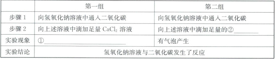 。实验结论: 氢氧化钠与二氧化碳发生了反应。