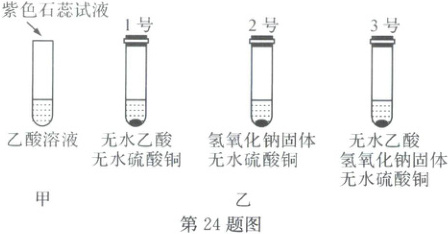 (填“氧化物”“盐”或“有机物”)。(2) 如图甲,向装有乙酸溶液的试管中加入紫色石蕊试液,试管中溶液呈