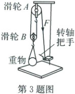 3. (2025·德清)如图所示是小德自己组装的滑轮组玩具,现通过转动转轴把手拉动绳子来提升重物,在4秒内将重为1牛的物体匀速提升16厘米,忽略绳子和滑轮的质量及摩擦阻力。下列说法中正确的是(