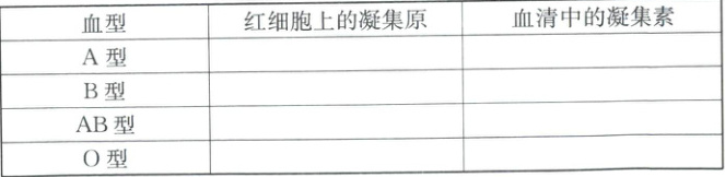 发生凝集作用。填写不同血型的红细胞上的凝集原和血清中的凝集素名称。