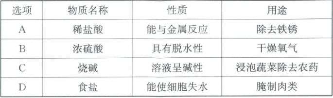 7. (2025·天台)表中物质用途与性质的对应关系,正确的是 (