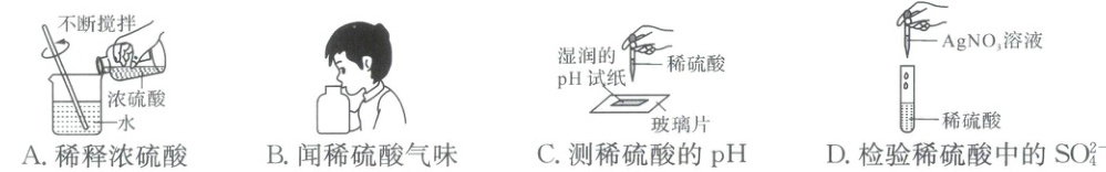 1. 下列有关浓硫酸稀释及探究稀硫酸性质的实验,操作正确的是(