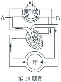 16. 如图为人体血液循环示意图。请据图回答下列问题。