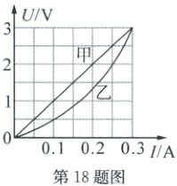 18. 如图是小灯泡L和定值电阻R的电流随电压变化的图像,其中小灯泡L的图像是