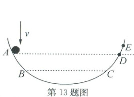 13. 如图所示,一小球从$A$点以一定的速度$v$沿粗糙的弧形轨道滚下,依次经过高度相同的$B$点和$C$点。下列关于小球滚动过程的分析不正确的是(