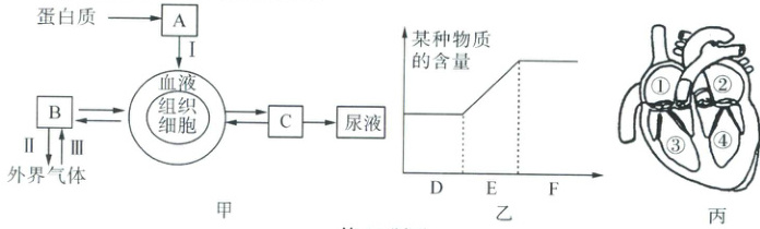 (填物质名称)进入血液,最先到达图丙中心脏四个腔中的Ⅰ