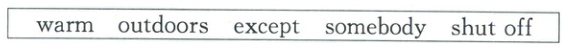 1.shut off 2.outdoors 3.except 4.Somebody 5.warmth