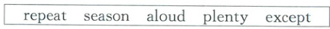 1.except 2.repeat 3.aloud 4.plenty 5.seasons