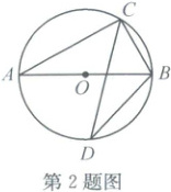 2. (2024·台州黄岩)如图,$ AB $ 是 $ \odot O $ 的直径,$ CD $ 是 $ \odot O $ 的弦,$ \angle CDB = 32^{\circ} $,则 $ \angle ABC = $(