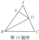 19. (2024·绍兴上虞)(8 分)如图,在 $\triangle ABC$ 中,$BD$ 平分 $\angle ABC$,交 $AC$ 于点 $D$,$E$ 是 $AB$ 上一点,连接 $DE$,满足 $BD^{2}=BC· BE$. 求证:$\triangle BCD\sim\triangle BDE$.